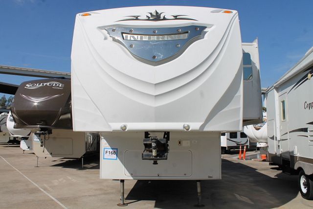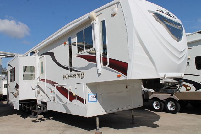 This 2009 Inferno has a large roomy floor plan thats comfortable for the whole family. Features include....Electric Landing Gear, 3 Slide-outs, Onan Gas Generator, 2 Ducted Roof A/Cs, Double Door Refrigerator, Main Awning, CD Radio, Heated Tanks, Outside Speakers, 2 TVs, DVD Player, Microwave, 3 Burner Range and Oven. Plenty of cargo space so you can take along all of your toys. Get out and Enjoy!