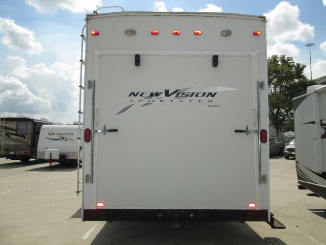 This 2006 New Vision Sportster has a spacious cargo area measuring aprox 14'. It's Features include....Electric Landing Gear, 3 Slide-outs, Onan Gas Generator, 2 Roof A/Cs, Double Door Refrigerator, Stand-Alone Ice Maker, Main Awning, On Board Fuel Tank and Dispenser, CD Radio, Outside Shower and Speakers, TV, DVD Player, Microwave, 3 Burner Range and Oven. Hit the highway to your favorite spot.