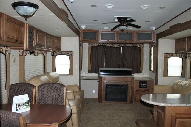 This 2012 Big Horn has a comfortable living space with plenty of storage and counter kitchen space for the cooking enthusiast. Features include....Hydraulic/Electric Landing Gear, 4 Slide-outs, 5500W Onan Gas Generator, 2 Ducted Air Conditioners, 4 Door Gas/110V Refrigerator, Washer/Dryer Connections, CD Radio, Heated Tanks, TV, Outside Shower, Convection Microwave, 3 Burner Range and Oven. Spend quailty time together in this Bighorn.
