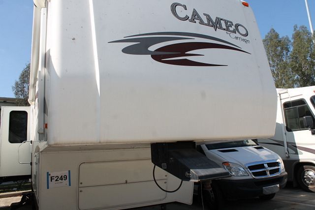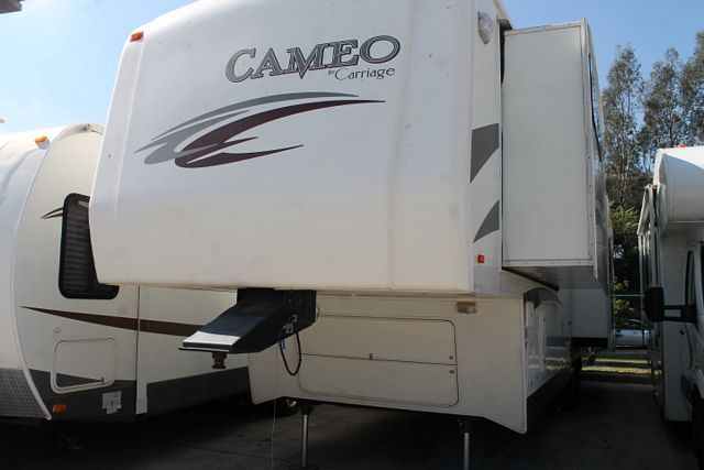This 2010 Carriage Cameo could be your next home. Features include....Electric Landing Gear, 3 Slide-outs, 2 Ducted Air Conditioners, Double Door Refrigerator, Main, Slide Awnings, Washer/Dryer Connections, 2 TVs, 2 DVD Players, Outside Shower, Microwave, 3 Burner Range and Oven. This Cameo has all the comforts of home.