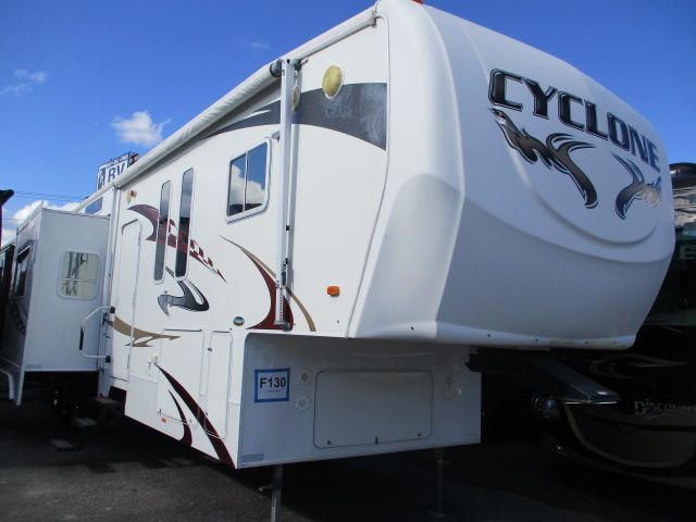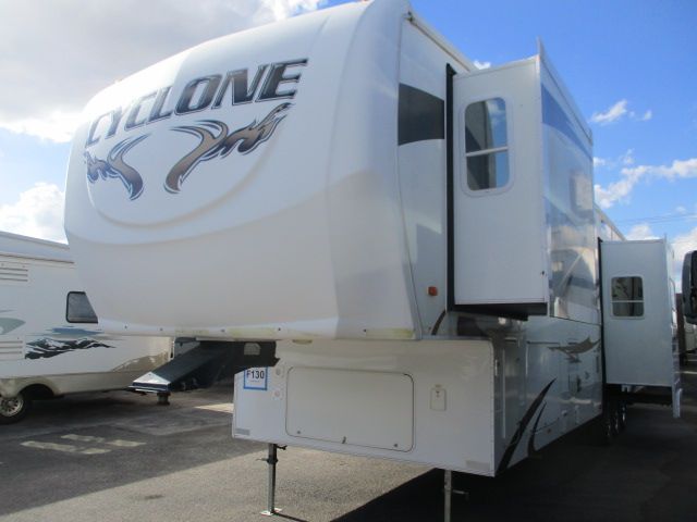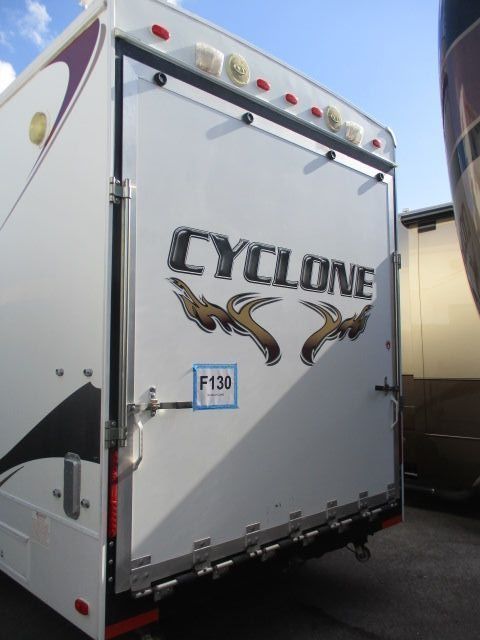 This 2008 Cyclone has an Electric Landing Gear, 3 Slide-outs, Onan Gas Generator, 2 Ducted Roof A/Cs, Double Door E/G Refrigerator, Main Awning, Washer/Dryer, CD Radio, Satellite Dish, Outside Speakers, 2 TVs, Outside Shower, Convection Microwave, 3 Burner Range, Rear Drop Door Toy Area, Fueling Station, Central Vac.. Ready to Hit the Road for the Next Dirt Bike Race..