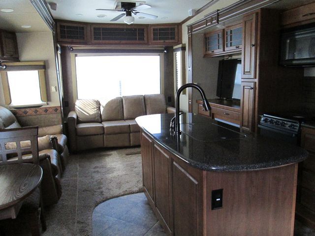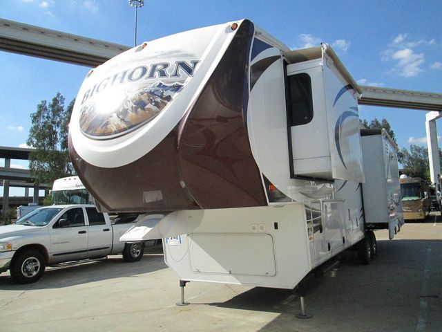 This 2013 Big Horn has an island style kitchen with large pantry. Comforts include ....Hydrualic/Electric Landing Gear, 3 Slide-outs, 2 Ducted Air Conditioners, Four Door Refrigerator, Main & Slide Awnings, Washer/Dryer Connections, CD Radio, Outside Speakers, TV, DVD Player, Outside Shower, Microwave, 3 Burner Range, Oven, Central Vacuum, Fireplace and Weather Guard. Enjoy all the comforts of home at your favorite spot.