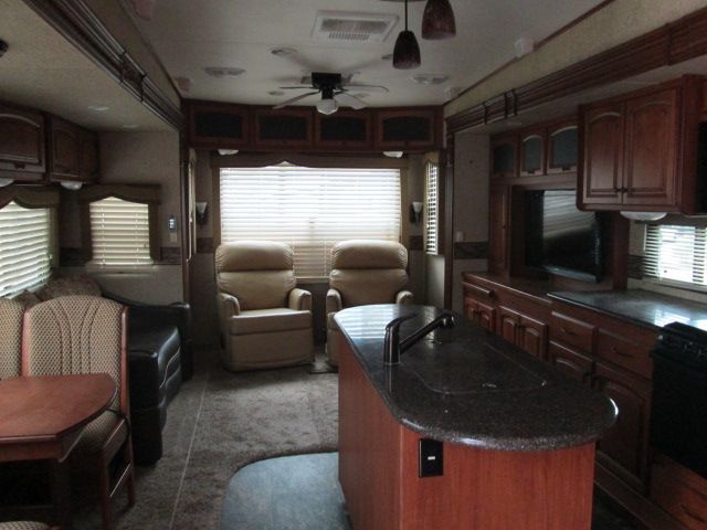 This Well Maintained 2013 Big Country By Heartland has 6 Point Automatic Leveling with Hydraulic/Electric Landing Gear, 3 Slide-outs, 2 Ducted Air Conditioners, Four Door Refrigerator with Ice Maker, Electric Main, Slide Awnings, Washer/Dryer Connections, CD Radio, Outside Speakers, TV, DVD Player, Outside Shower, Microwave, 3 Burner Range and Oven. Nice 5th wheel for all of your traveling needs.