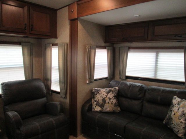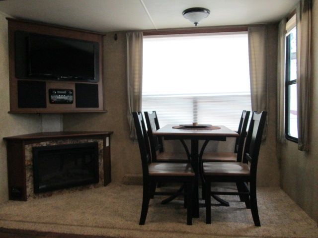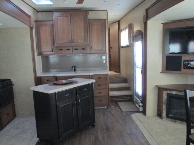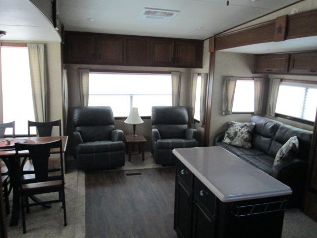 This Nearly New 2015 Open Range is loaded with comforts that include....Automatic Leveling with Hyadraulic/Electric Landing Gear, 3 Slide-outs, Fireplace, 2 Ducted Air Conditioners, Double Door Gas/110V Refrigerator, Main Awning, CD Radio, Outside Speakers, TV, Outside Shower, Microwave, 3 Burner Range and Oven. This Open Range also include a Four Seasons package, Large Roomy Shower and Island Style Kitchen cart on rollers.
