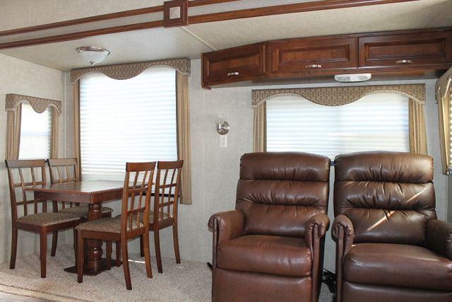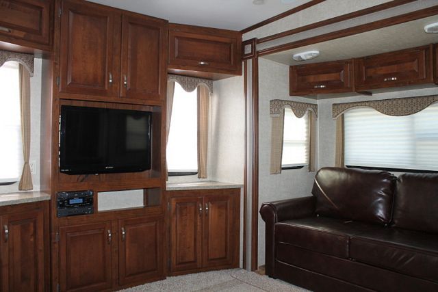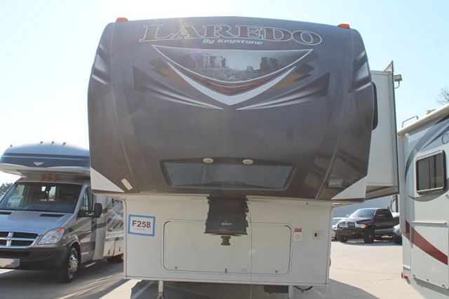 This 2013 Laredo By Keystone has a spacious floor plan with plenty of room for everyone. Features include....Electric Landing Gear, 4 Slide-outs, 2 Ducted Air Conditioners, Double Door Gas/110V Refrigerator, Automatic Main Awning, CD Radio, Heated Tanks, Outside Speakers, 2 TVs, Outside Shower, Microwave, 3 Burner Range and Oven. Also has a large walk in shower.