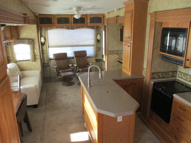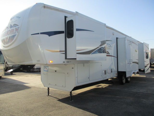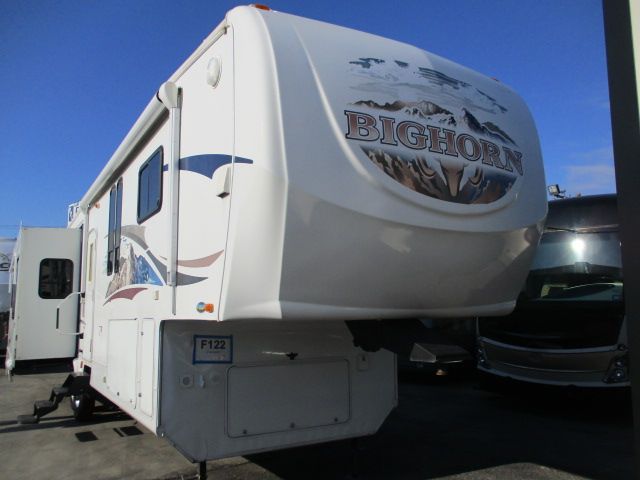 This 2008 Bighorn has an Electric Landing Gear, 4 Slide-outs, 2 Non-Ducted And 1 Ducted Air Conditioners, Double Door Gas/110V Dometic Refrigerator, In-Fridge Ice Maker, Automatic Main Awning And Window Awning, Washer/Dryer, CD Radio, Winegard Travler SWM3 Satellite Antenna, TV, Outside Shower, Microwave, 3 Burner Range, Oven, Beautiful Fifth Wheel For You And Your Family To Enjoy.