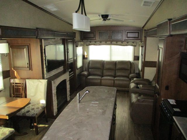 This 2015 Eagle Premier has a Mor Ryde Suspension for Ease in Pulling. Options include.....3 Slide-outs, Rear View Camera with Monitor, Auto Leveling Jacks, 1 Non-Ducted And 1 Ducted Air Conditioner, Fireplace, 4 Door Gas/110V Dometic Refrigerator, Automatic Main Awning And Slide Awning, Washer/Dryer Connections, Outside Kitchen, Air Bed for Guests, CD Radio, 3 TVs, DVD Player, Outside Shower, Microwave, 3 Burner Range and Oven. A Luxury 5th Wheel that Will Make a Great Home Away from Home!