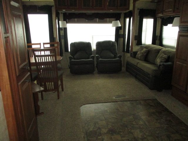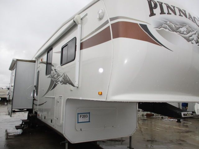 This 2011 Pinnacle has an Electric Landing Gear, 3 Slide-outs, 1 Ducted Air Conditioner, 4 Door Gas/110V Norcold Refrigerator, Electric Main/Slide Awnings, CD Radio, Outside Speakers, 2 TVs, DVD Player, Outside Shower, Microwave, 3 Burner Range, Oven, Tinted Glass, Fantastic Fan, Ceilig Fan, Fireplace, Central Vac, Cedar Closet.. Well Taken Care of Unit Ready to GO Home With You!