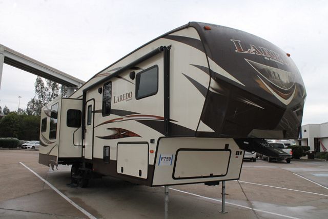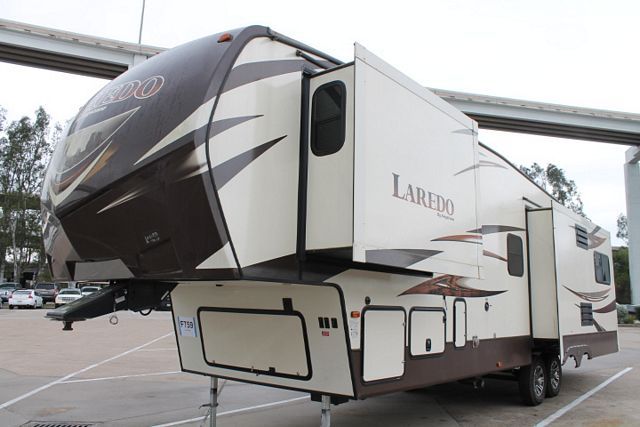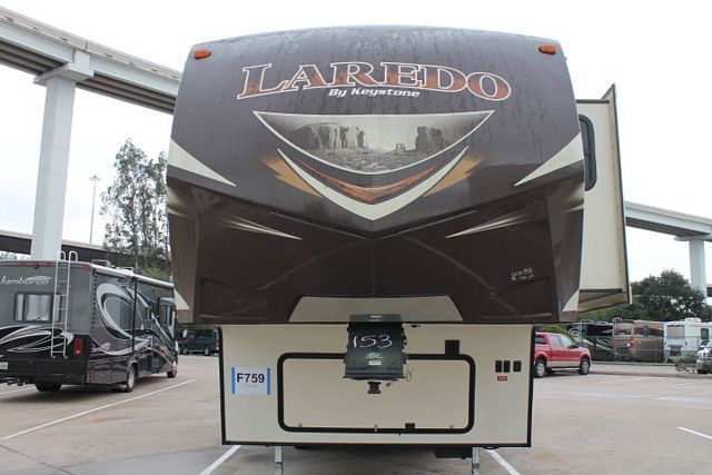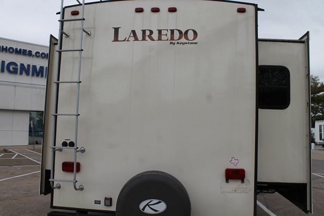 This Nearly New 2015 Laredo By Keystone has all the comforts needed for wonderful adventures. Features include....Electric Landing Gear, 3 Slide-outs, 2 Ducted Air Conditioners, 4 Door Gas/110V Refrigerator, Automatic Main Awning, CD Radio, Heated Tanks, Fireplace, DVD Player, Outside Shower, Microwave, 3 Burner Range and Oven. Enjoy freetime at your favorite spot in this Laredo.