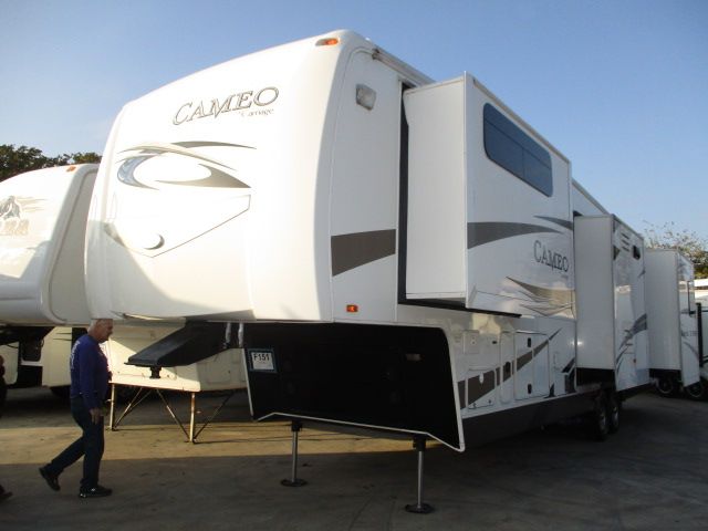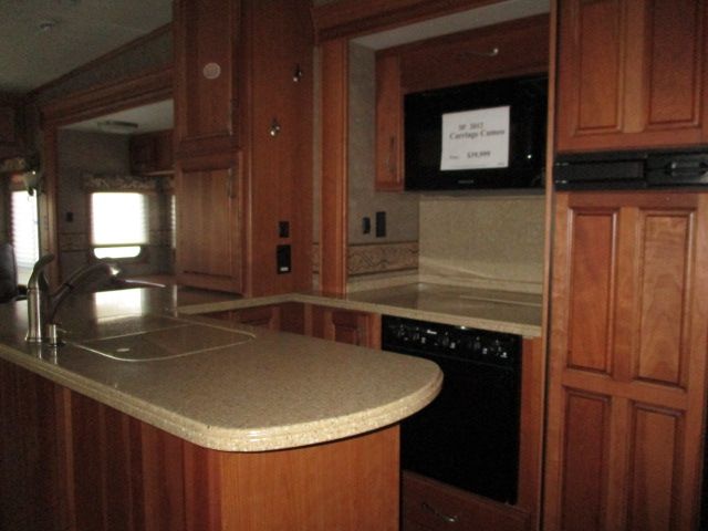 This 2012 Carriage Cameo has Beautiful Glazed Cherry Wood Throughout. Amenities include.....Electric Landing Gear, 4 Slide-outs, 2 Ducted Air Conditioners, 4 Door Norcold Refrigerator, Electric Main Awning, Washer/Dryer, Sealy Posturepedic Queen Mattress, FM/CD/DVD Radio, 2 TVs, Outside Shower, Convection/Microwave, Arctic Insulation Package, 3 Burner Range, Oven and Big Foot automatic leveling jacks. Enjoy all the Comforts of Home while Traveling to your Favorite Destination. 181 Cubic Feet of Storage in 3 Outside Compartments. Let's go RVing!