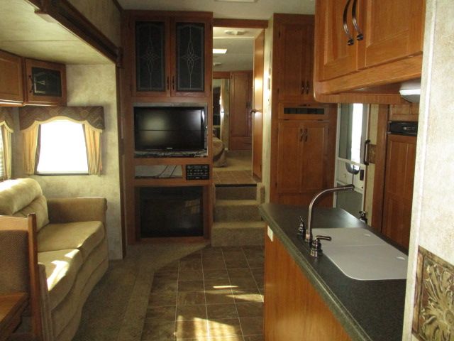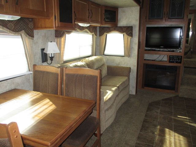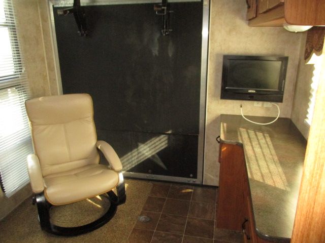 This 2011 Moutaineer has a Hydraulic Hydraulic Landing Gear, 3 Slide-outs, 1 Ducted Air Conditioner, Double Door Gas/110V Norcold Refrigerator, Automatic Main Awning, Washer/Dryer Connections, CD Radio, Satellite Dish, Outside Speakers, 3 TVs, DVD Player, Microwave, 3 Burner Range, Oven, 2 Door Plan, Fireplace, Ceiling Fan, Desk Work Station in the Toy Area, Max Aire Covers.. This Toy Hauler is Ready for Your Travel Adventure.