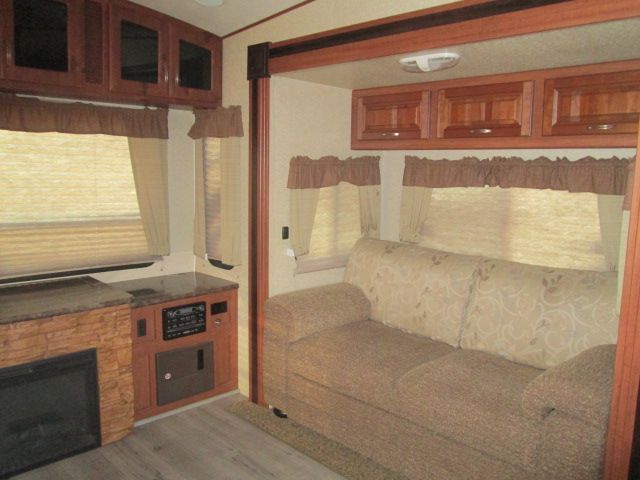 This 2013 Wildcat By Forest River has a comfortable layout with plenty of storage space. It's features include....Electric Landing Gear, 3 Slide-outs, 2 Ducted Air Conditioners, Double Door Gas/110V Refrigerator, Main Awning, CD Radio, Outside Speakers, 3 TVs, DVD Player, Outside Shower, Microwave, 3 Burner Range and Oven. Includes New Flooring, Central Vacuum, Fireplace, Easy Flex Suspension for a smoother tow. Bonus: Also has Outside Tv, Ref and Ice Maker for hours of outdoor enjoyment.