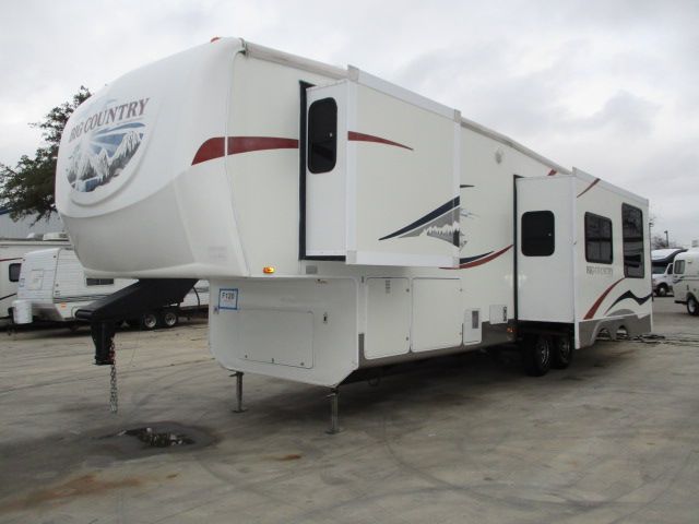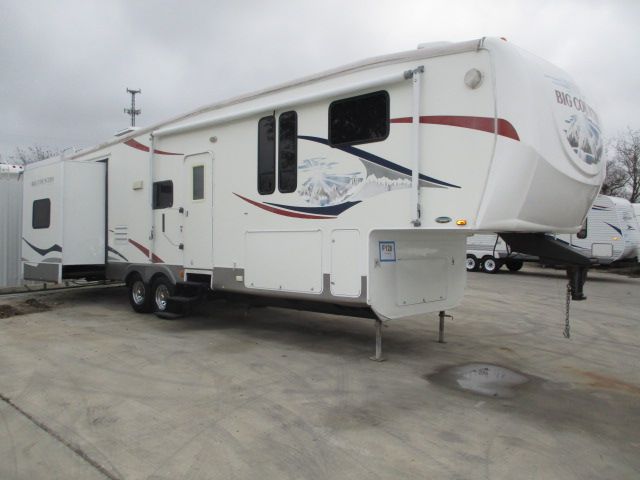 This 2008 Big Country has an Electric Landing Gear, 3 Slide-outs, 2 Ducted Air Conditioners, Double Door Gas/110V Norcold Refrigerator, Main Awning, TV, Outside Shower, Microwave, 3 Burner Range, Oven, Goose Neck Hitch, Ceiling Fan, Tinted Glass. This Bunk House is Ready for the Kids, Grand Kids and the Friends..