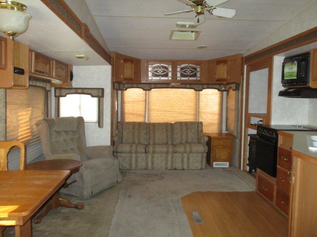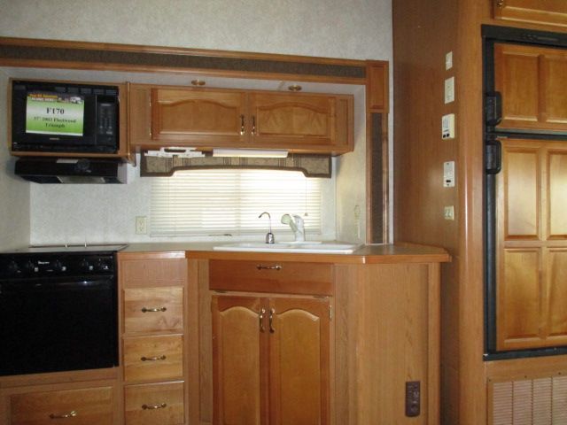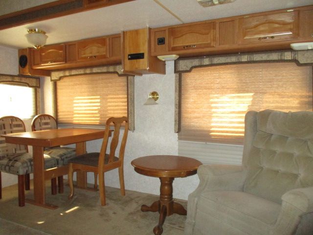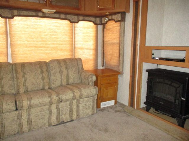 Great for the Deer Lease! This 2003 Triumph could be your next home away from home. It's Features include....Electric Landing Gear, 3 Slide-outs, 2 Non-Ducted Air Conditioners, Double Door Gas/110V Refrigerator, Main Awning, 1 Piece Washer/Dryer, CD Radio, DVD Player, Outside Shower, Microwave, 3 Burner Range and Oven. Also includes an Electric Fireplace.
