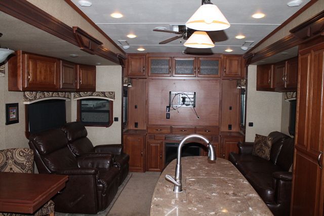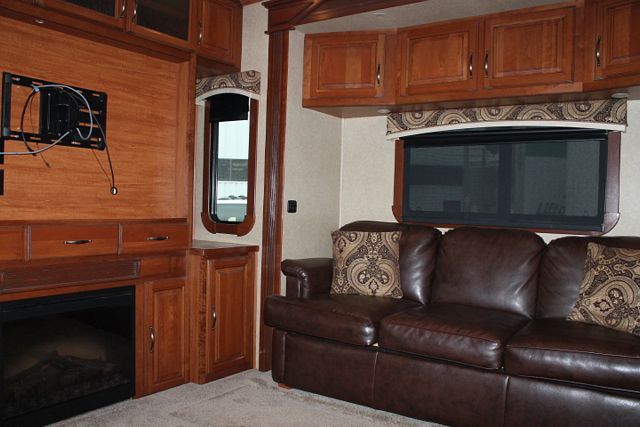 This Comfortable 2013 Redwood has a Trailair Suspension for Smoother Tow Experience. It's Comforts include....3 Slide-outs, Fully Automatic 6 Point Hydraulic/Electric Levelers, Fireplace, 2 Ducted Air Conditioners, Central Vacuum System, 4 Door Gas/110V Refrigerator with Ice Maker, Main Awning, 2 Spare Tires with Alloy Rims, 2 Piece Washer/Dryer, CD Radio, 2 TVs, DVD Player, Outside Shower, Microwave and 3 Burner Range. Designed for Full timing Living and it shows.