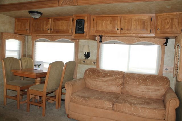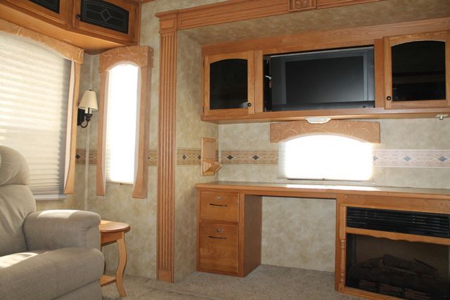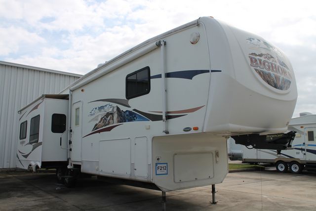 This 2008 Bighorn By Heartland is comfortable for full time living. It's Options include.... 3 Slide-outs, 2 Non-Ducted Air Conditioners, Double Door Gas/110V Refrigerator, Main/Slide Awnings, Washer/Dryer, TV, Microwave, 3 Burner Range and Oven. Trail Aire Pin Box for Ease in Towing. Enjoy the freedom of Living in this Bighorn.