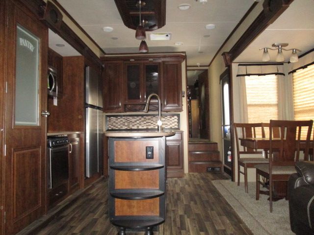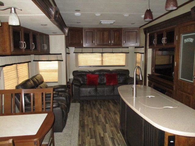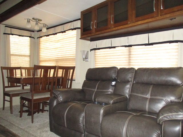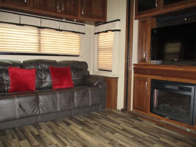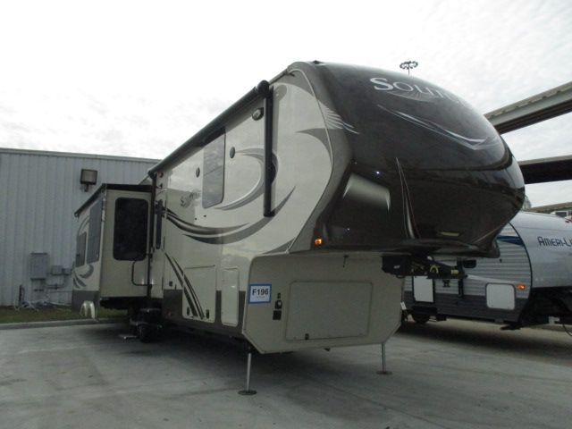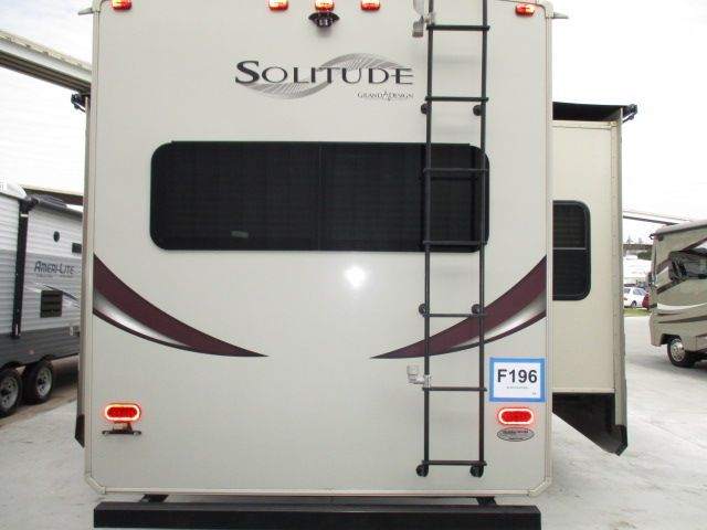 Sharp Looking 5th Wheel thats a must see. This 2015 Solitude is loaded with comforts include..... Hydraulic/Electric Landing Gear, 3 Slide-outs, Onan Propane Generator, 2 Ducted Air Conditioners, 4 Door Gas/110V Refrigerator, Main/Slide Awnings, 2Piece Washer/Dryer, CD Radio, Heated Tanks, Outside Entertainment System, Fireplace, 3 TVs, Outside Shower, Microwave, 3 Burner Range and Oven. Nice for the occasional weekend get away or the extended stay.