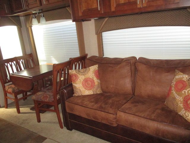 This 2012 Trilogy has an Electric Landing Gear, 3 Slide-outs, Onan Propane Generator, Refrigerator, In-Fridge Ice Maker, 2 TVs, 2 DVD Players, Outside Shower, Convection Microwave, 4 Burner Range, A Beautiful Fifth Wheel That You And Your Family Can Enjoy For Years To Come. King size bed.