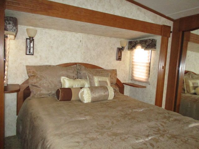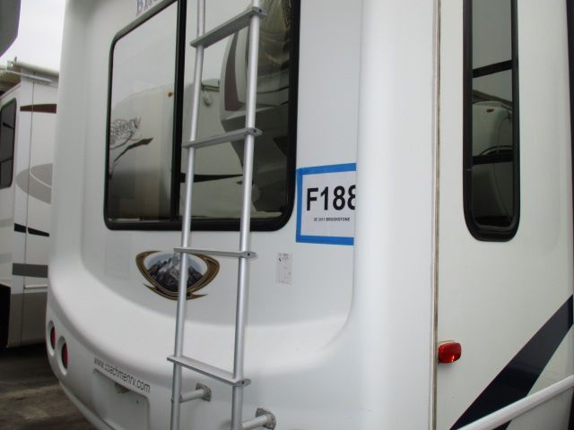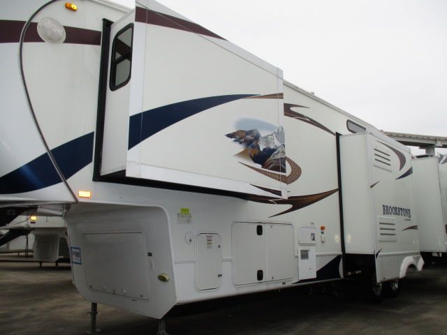 This 2011 Brookstone has a wonderful layout that very popular. Features include.... Electric Landing Gear, 4 Slide-outs, 2 Non-Ducted Air Conditioners, 4 Door Gas/110V Refrigerator, Main Awning, 1 Piece Washer/Dryer, CD Radio, Satellite Dish, Outside Speakers, DVD Player, Microwave, 3 Burner Range and Oven. Includes a King Size Bed for a great nights rest.