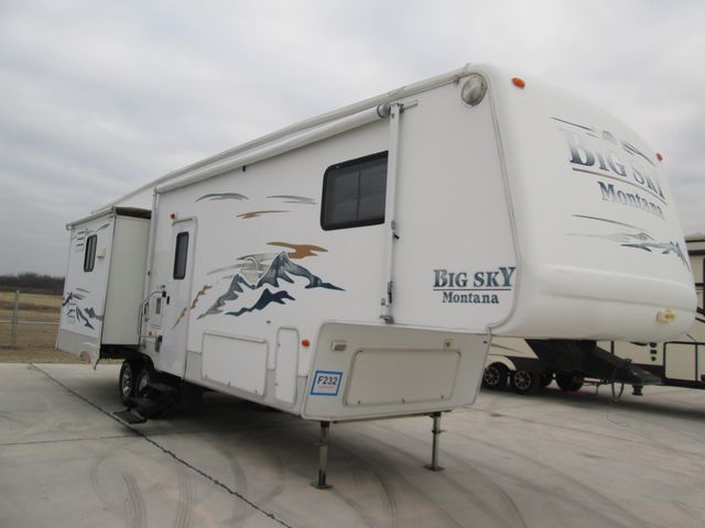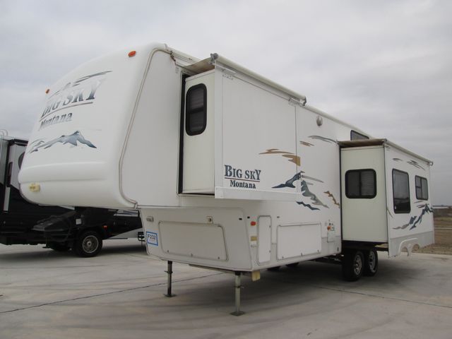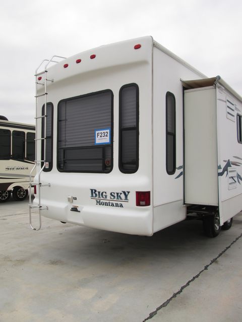 This 2003 Montana Big Sky By Keystone Has An Electric Landing Gear, Amenitites Include... 3 Slide-Outs, Double Door Gas/110V Dometic Refrigerator, Main Awning, Washer/Dryer, Ceiling Fan, CD Radio, A Safe, Solar Panel, Outside Shower, Microwave, 3 Burner Range, And Oven. Spend Quality Time With Your Family While Camping In This Montana Big Sky By Keystone. Let's Go Traveling Now!!