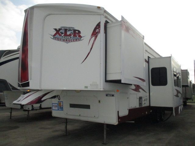 This 2011 Xlr Lite Toyhauler has a 10' Cargo Hold and is great for any adventure. Features include....Electric Landing Gear, 2 Slide-outs, Onan Gas Generator, 2 Ducted Air Conditioners, Double Door Gas/110V Refrigerator, Main Awning, CD Radio, Outside Speakers, TV, DVD Player, Convection Microwave and 3 Burner Range. The cargo space can be used for almost anything. Carring your Toys, large or small, Extra Storage or Pets. Just loaded and Go!