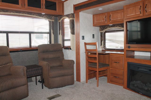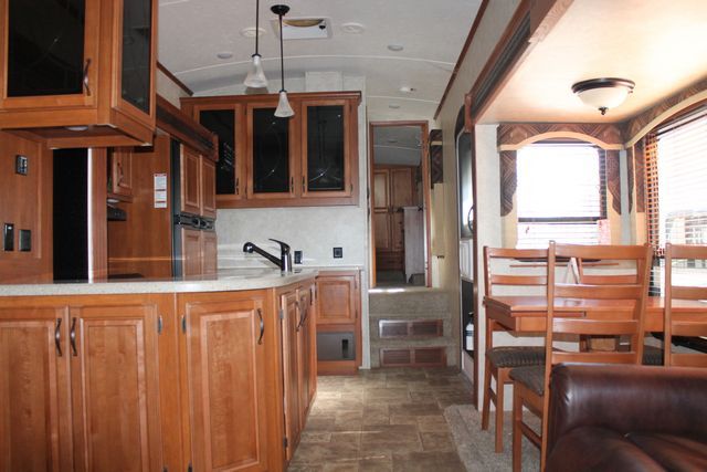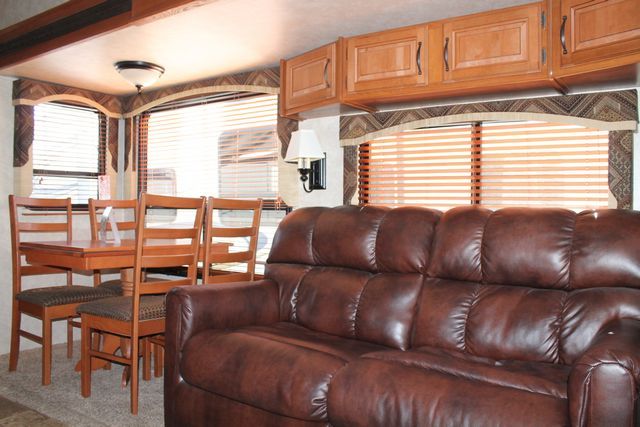 This 2014 Montana High Country has an L-Shaped kitchen thats perfect for cooking enthusiast. Comforts include....Electric Landing Gear, 4 Slide-outs, 2 Non-Ducted Air Conditioners, 4 Door Gas/110V Refrigerator, Automatic Main Awning, Washer/Dryer Connections, CD Radio, Outside Shower and Speakers, DVD Player, Microwave, 3 Burner Range and Oven. Your sure to enjoy your stay in this comfortable Montana.