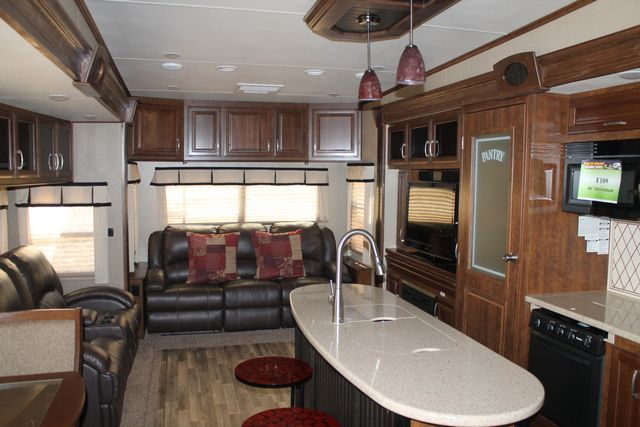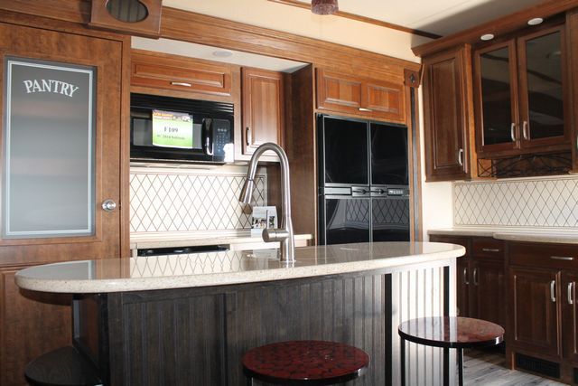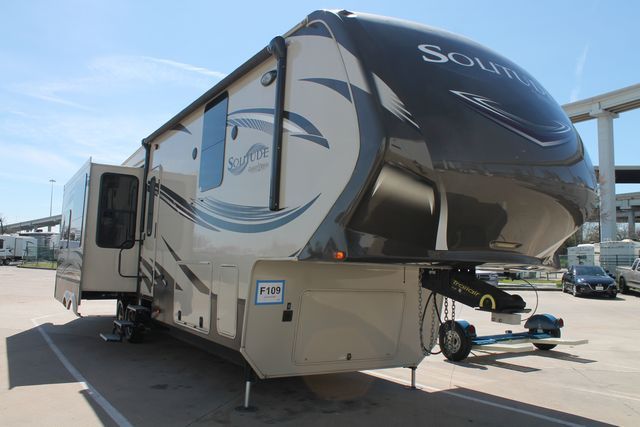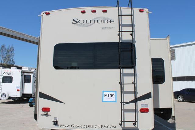 Welcome Home! This Well Maintained 2014 Solitude is perfect for the extended stay. With it's spacious floor plan thats loaded with comforts that include....Trailair Suspension, 6 Point Fully Automatic leveling with Hydrualic/Electric Landing Gear, 3 Slide-outs, 2 Ducted Air Conditioners, 4 Door Gas/110V Refrigerator, Automatic Main Awning, Washer/Dryer Connections, CD Radio, Outside Shower and Speakers, 2 TVs, DVD Player, Microwave, 3 Burner Range and Oven. Truely a Grand Design with it's Large Pantry and Roomy Kitchen with ample counter space, Walk in Shower and Closet, King Size Bed, Fireplace, Leather Sofa and Theratre seating. A Must See Home!