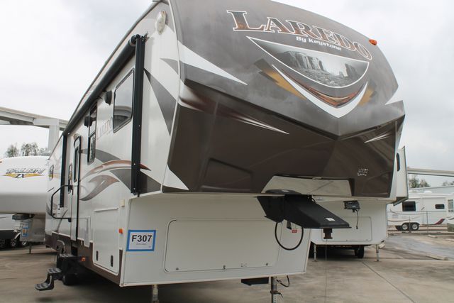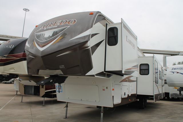 Bunk Floor Plan with Outdoor Kitchen Space. This 2014 Laredo By Keystone is perfect for the a large family or group of friends. It's Features include.... Electric Landing Gear, 3 Slide-outs, 1 Ducted Air Conditioner, Double Door Gas/110V Refrigerator, Main Awning, Washer/Dryer Connections, CD Radio, Outside Shower and Stereo, Microwave, 3 Burner Range and Oven. Enjoy some freetime with family and friends at your favorite spot.