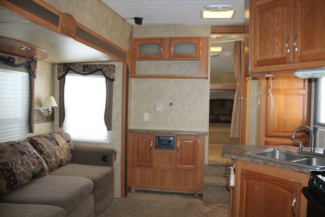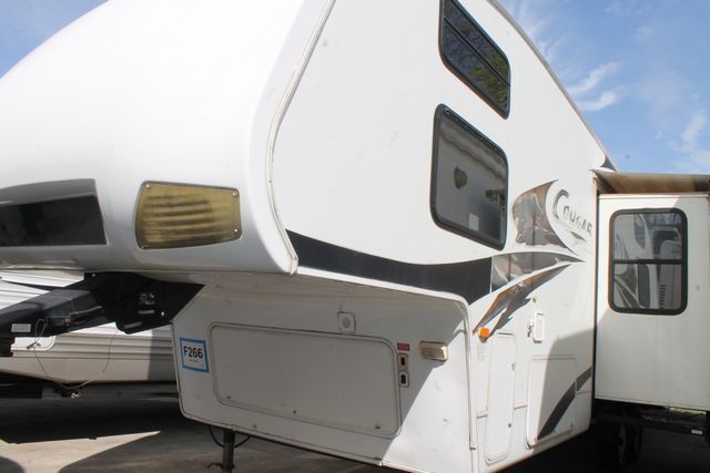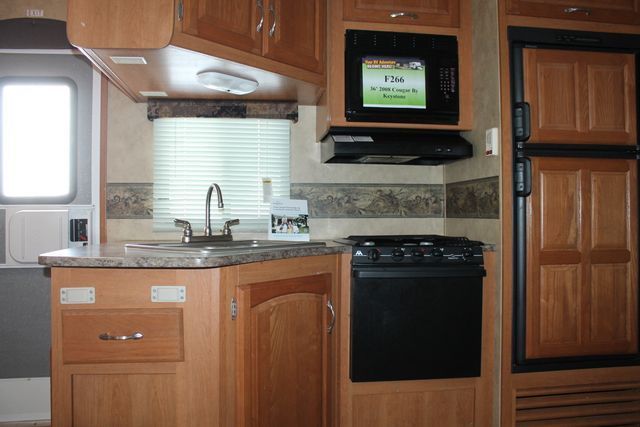 Bunk Floor Plan, This 2008 Cougar By Keystone has a Front Bunk floor plan with front Bathroom and Rear Master Suite. Options include....an Electric Landing Gear, 3 Slide-outs, 1 Ducted Air Conditioner, Double Door Gas/110V Refrigerator, Main/Slide Awnings, CD Radio, Outside Speakers, Outside Shower, Microwave, 3 Burner Range and Oven. Nice family layout thats perfect for all of your travels.