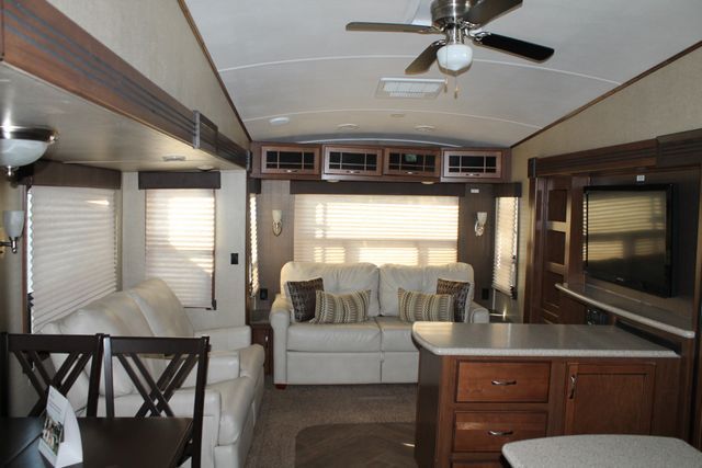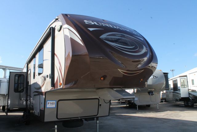 This 2013 Heartland Sundance has a wondeful kitchen layout thats perfect for the cooking enthusiast. It's Amenities include.... Trailair Suspension, Electric Landing Gear and Stabilizers, 3 Slide-outs, 2 Ducted Air Conditioners, Double Door Gas/110V Refrigerator, Automatic Main Awning, Washer/Dryer Connections, CD Radio, Heated Tanks, Fireplace, Outside Speakers, TV, DVD Player, Outside Shower, Microwave, 3 Burner Range, Oven, King Size Bed and Full Size Shower/Tub. Nice RV for a weekend getaways or the extended stay.
