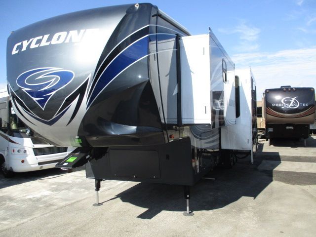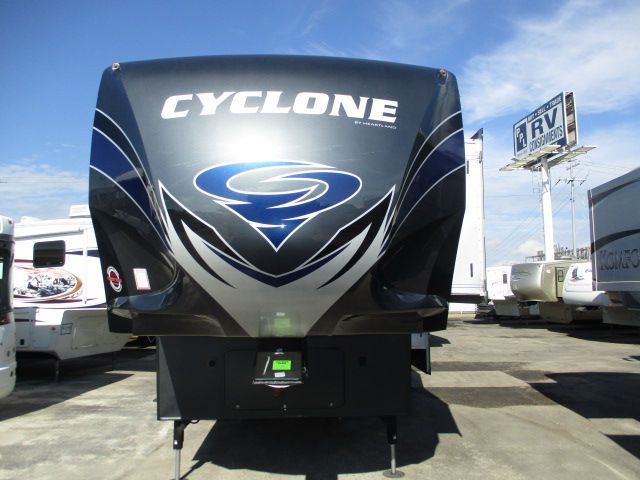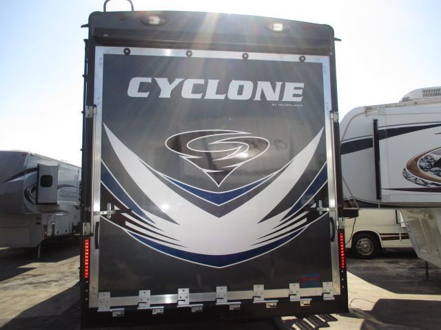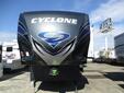 This 2016 Cyclone has an Electric Landing Gear, 3 Slide-outs, Onan Gas Generator, 3 Ducted Air Conditioners, 110V Residential Refrigerator, Automatic Main Awning, Washer/Dryer Connections, CD Radio, Outside Speakers, 3 TVs, 2 DVD Players, Outside Shower, Microwave, 3 Burner Range, Oven and 25K in options including FULL BODY PAINT.