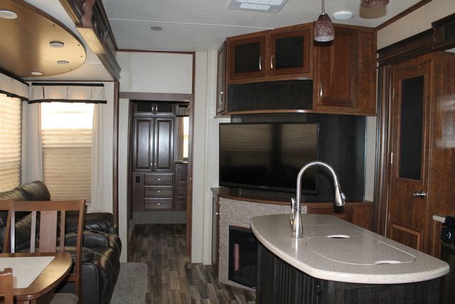 Sharp Looking Rig, This Nearly New 2015 Solitude Bath & Half with Den is perfect for Full Time Living and is loaded with Comforts include....6 Point Auto Leveling with Hydraulic/Electric Landing Gear, 5 Slide-outs, 2 Ducted Air Conditioners, Upgraded 4 Door Gas/110V Refrigerator, Automatic Main Awning added 2nd Awning, Washer/Dryer Connections, CD Radio, Outside Shower and Speakers, 2 TVs, 2 DVD Players, Convection Microwave, 3 Burner Range and Oven. Upgrades: RVIA Seal, Peace of Mind Package, Residential Living Max-Built/Weather-Tek Package, Winterizaton, Bedroom Fantastic Fan, Mega Dresser, 2 Fireplaces, Large Shower, King Size Bed and a Full Outdoor Kitchen with Micro, Refrig and induction Cook Top. Wow!
