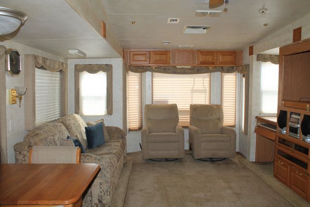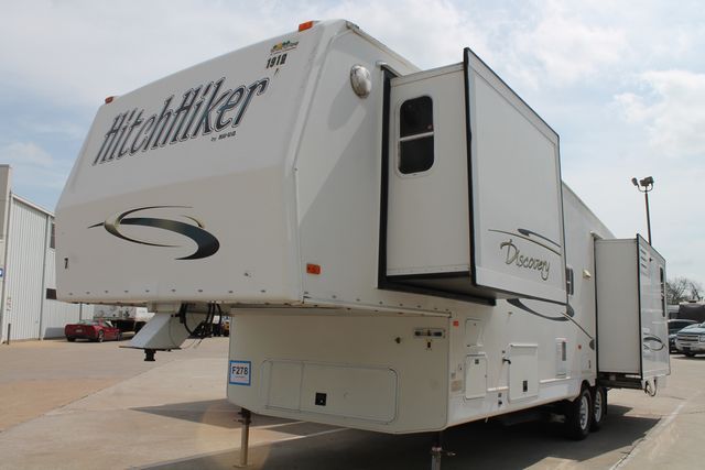 This 2001 Hitchhiker By Nu-Wa has a nice layout with private master suite. Features include....Electric Landing Gear, 3 Slide-outs, 1 Non-Ducted Air Conditioner, Double Door Gas/110V Refrigerator, Main Awning, CD Radio, DVD Player, Outside Shower, Microwave, 3 Burner Range and Oven. Enjoy Freetime in this comfortable Hitchhiker.