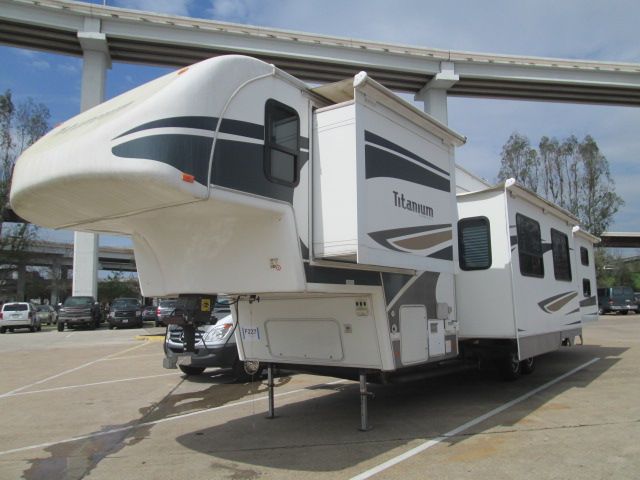 This 2008 Titanium has comfortable family friendly floor plan that great for everyone. Bunk Floor Plan. Features include....Electric Landing Gear, 4 Slide-outs, 2 Ducted Air Conditioners, Double Door Gas/110V Dometic Refrigerator, Main/Slide Awnings, TV, DVD Player, Outside Shower, Microwave, 3 Burner Range and Oven. Enjoy freetime at your favorite spot. Go CAMPing!