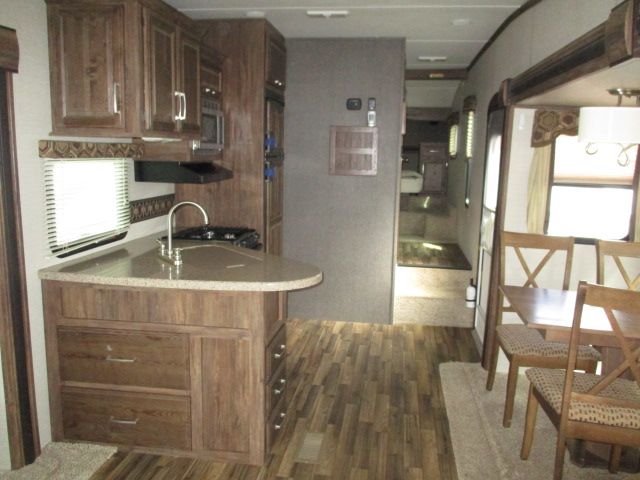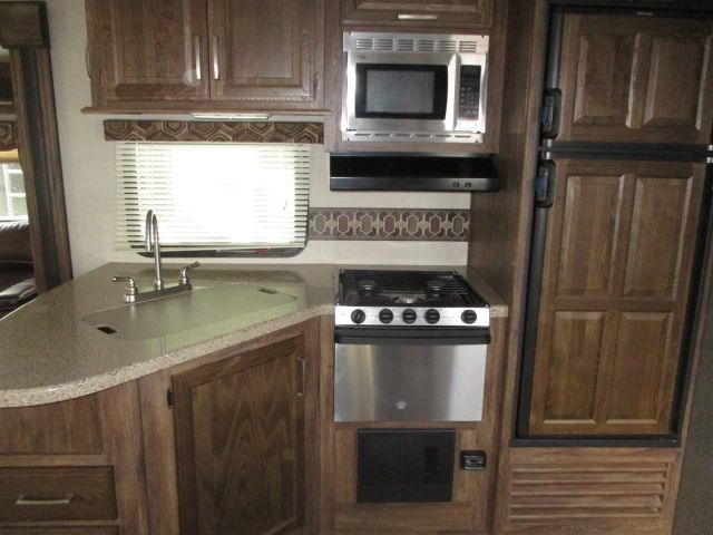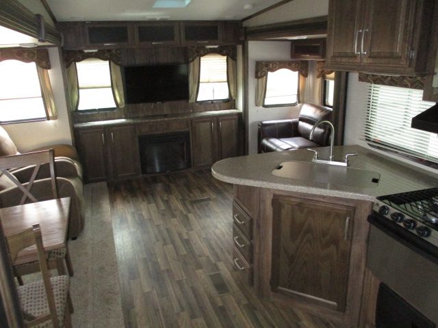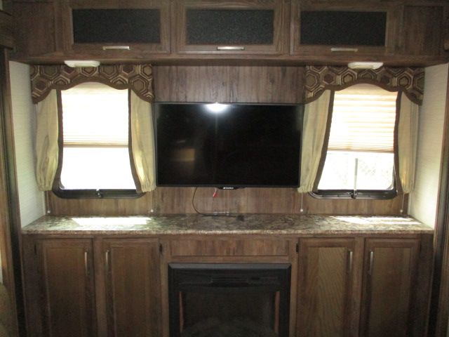 This 2015 Cougar By Keystone has a Hydraulic Landing Gear, 3 Slide-outs, 1 Ducted Air Conditioner, Double Door Gas/110V Dometic Refrigerator, Automatic Main Awning, Outside Speakers, TV, DVD Player, Fireplace, Microwave, 3 Burner Range, Oven, Tinted Glass, Max Aire Covers. A Well Cared for, Sharp Looking Rig.