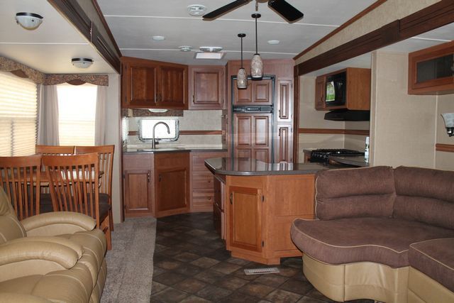 This 2014 Dutchmen Denali has the popular Rear Kitchen floor plan with plenty of counter space. Comforts include.... Electric Landing Gear, 3 Slide-outs, 2 Non-Ducted Air Conditioners, Double Door Gas/110V Norcold Refrigerator, Automatic Main Awning, Heated Tanks, Outside Speakers, Microwave, 3 Burner Range and Oven. Come home and relax after a long day in The Comforts of this Denali. Bonus: King Size Bed