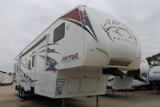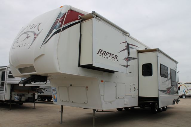 This 2009 Raptor By Keystone was design to carrying Motorcycles, Dirt Bikes, ATV's and so much more. Features include....Electric Landing Gear and Rear Stabilizers, 2 Slide-outs, Onan Gas Generator, 2 Ducted Air Conditioners, Double Door Gas/110V Dometic Refrigerator, Outside Freezer, Main/Slide Awnings, Outside Shower and Speakers, DVD Player, Microwave, 3 Burner Range, Oven, 12' Garage and a Fueling Station. Enjoy a day of adventures then relax in front of a TV/Fireplace or the King Size Bed for a great nights rest.