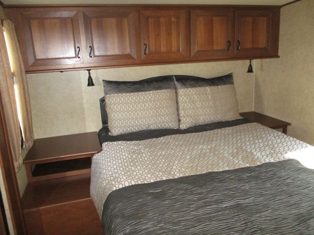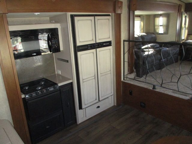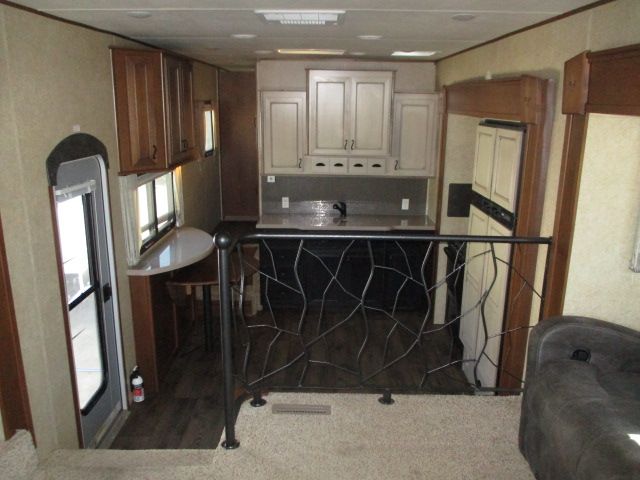 This 2014 Mesa Ridge has an Electric Landing Gear, 4 Slide-outs, 2 Ducted Air Conditioners, 4 Door Gas/110V Norcold Refrigerator, Automatic Main Awning, Washer/Dryer Connections, Outside Entertainment System, TV, Outside Shower, Fireplace, Microwave, 3 Burner Range, Oven, Wonderful Front Living Room Plan, Huge Storage for Kayaks, Bikes etc Accessed From the Back Cargo Doors.