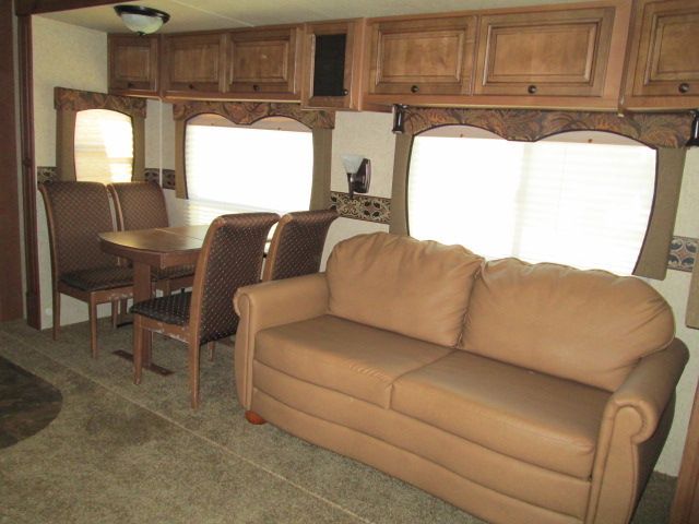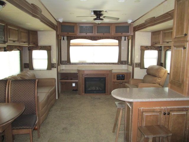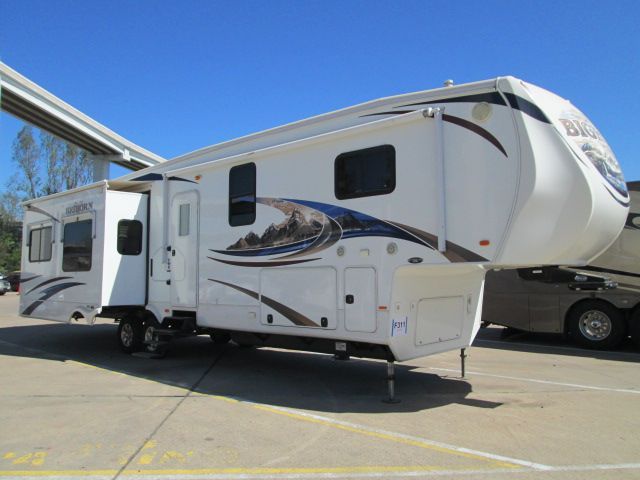This 2012 Bighorn has a wonderful floor plan thats perfect for weekend getaways or extended stays. It's Amenities include....Hydraulic/Electric Landing Gear and Electric Stabilizers , Dexer Axles w/E-Z Flex Suspension, 4 Slide-outs, 2 Ducted Air Conditioners, Wall Thermostat(bedroom), 4 Door Gas/110V Refrigerator with Ice Maker, Power Main Awning, Window/Slide Awnings, Washer/Dryer Connections, Outside Shower and Speakers, 2 TVs, DVD Player, Fireplace, Central Vacuum, Convection Microwave, 3 Burner Range and Oven. Also includes Toylock, Slam Shut Baggage Doors, Keyless Entry and so much more.