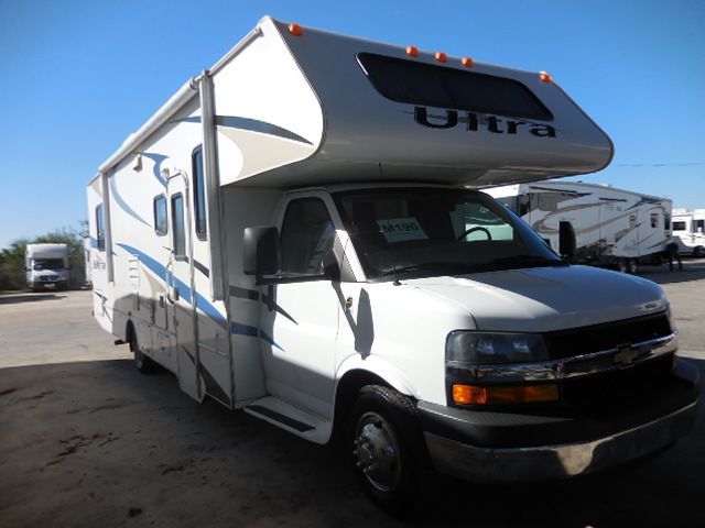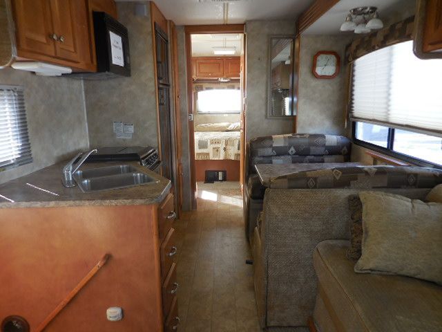This 2008 Conquest Ultra has a 6.0 L Chevy Engine On a Workhorse Chassis, 1 Slide-out, Onan Gas Generator, 1 Ducted Roof A/C, Double Door Refrigerator, Main & Slide Awnings, Backup Camera, CD Radio, Outside Entertainment System, TV, Microwave, 3 Burner Range, Oven and queen size overhead bed. Take a ride to your favorite destination and spend quality time with your family. Let's go RVing