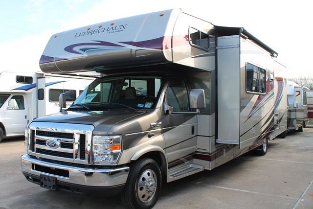 This 2014 Leprechaun By Coachmen has a V10 Ford Engine On a Ford E450 Chassis, 2 Slide-outs, Onan Gas Generator, 1 Ducted Roof A/C, Double Door Refrigerator, Main & Slide Awnings, Backup Camera, 5 Cd's Radios, Outside Entertainment System, 5 TVs, 5 DVD Players, Outside Shower, Convection Microwave and 3 Burner Range.Life on the road in this beauty will be enjoyable.