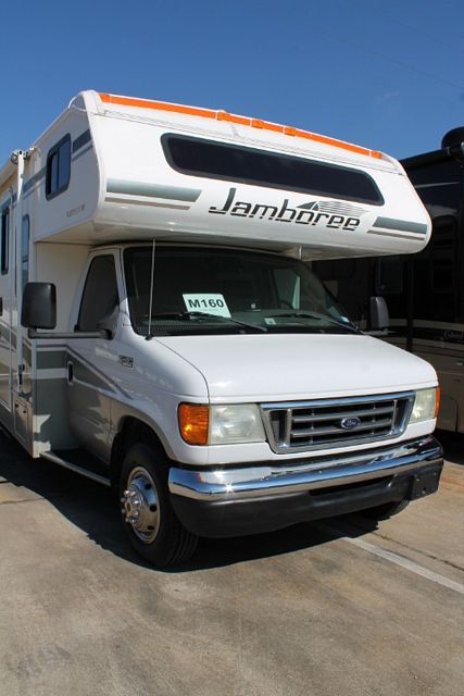 This 2004 Jamboree By Fleetwood with a bedroom in rear gives it some privacy. It has a V10 Ford Engine and Chassis, Features include....Onan Gas Generator, 2 Roof A/Cs, Double Door Refrigerator, Main Awning, Backup Camera, CD Radio, 2 TVs, Outside Shower, Microwave, 3 Burner Range and Oven. This floor plan also has a nice size bathroom with a shower. Stop by for a test drive today!