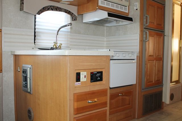 This 2003 Sunseeker By Forest River has a V-10 Ford Engine On a E450 Chassis, Options include....Features include....1 Slide-out, Onan Gas Generator, 1 Roof A/C, Double Door Refrigerator, Main & Slide Awnings, CD Radio, Satellite Dish, TV, DVD Player, Outside Shower, Convention/Microwave, 3 Burner Range and Oven. Get out and enjoy the views while in the comfort of this Sunseeker. Go RVing!