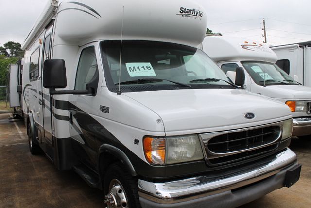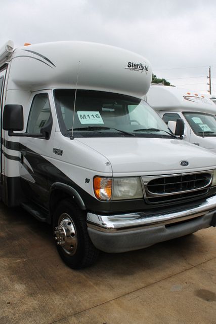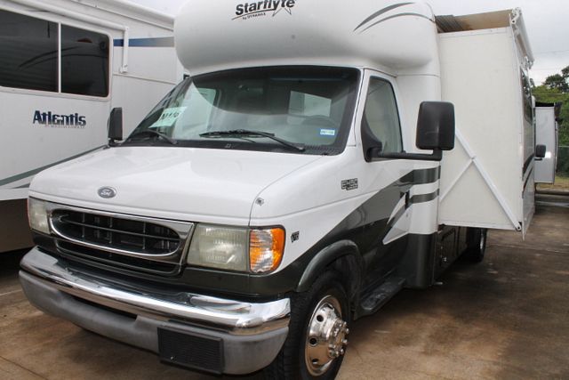 This 2002 Star Flyte By Dynamax has a 6.8l V-10 364hp Ford Engine On a E450 Chassis, Options include....Onan Gas Generator, 1 Ducted Roof A/C, Double Door Refrigerator, Main & Slide Awnings, Cassette/CD Radio, Outside Shower and Speakers, TV, DVD Player, Microwave and 2 Burner Range. This Star Flyte has a rear full size bathroom with closet and plenty of space. Nice floor plan for the traveling couple sleeping up to 3.