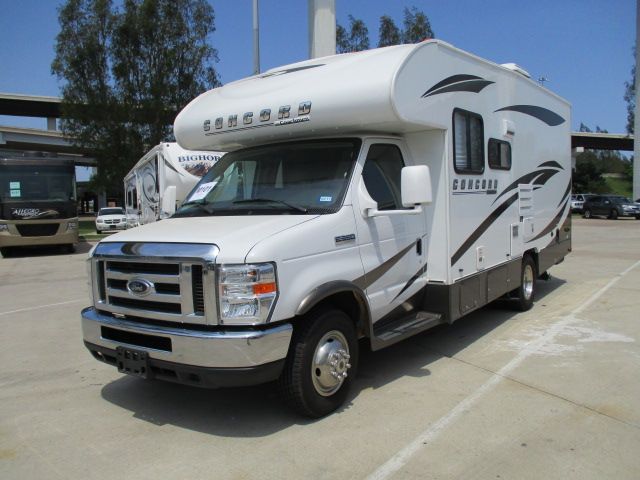 Wow ! Nearly New 2013 Coachmen Concord has been beautifully mainatained. It has a Low Mileage V 10 Ford Engine On a E350 Chassis, Comforts include....Onan Gas Generator, 1 Roof A/C, Double Door Refrigerator, Main Awning, CD Radio, TV, DVD Player, Outside Shower, Microwave, 3 Burner Range and Oven. Perfect for the RV Lifestyle and is a great way to Travel. You will never miss home while on the road with this Comfortable Concord. A MUST SEE!