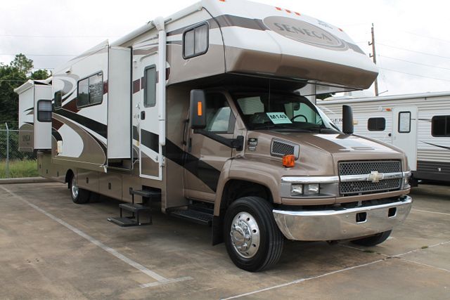Fuel Efficient ! This Very Popular 2006 Jayco's Seneca Hd with it's Durmax Diesel will not be here long. It is powered by a Low Mileage 6.6liter V-8 with 330hp Chevy Duramax Turbo Diesel Engine On a C5500 Chassis, Comforts include....Air Bag Suspension, 3 Slide-outs, Onan Diesel Generator, 2 Roof A/Cs, Levelers, Double Door Refrigerator, Main & Slide Awnings, Backup Camera, CD Radio, In-Motion Satellite System, 2 TVs, DVD Player, Outside Shower, Microwave, 3 Burner Range, Oven and so much more. Travel in Style and Comfort with this Diesel Powered Jayco.