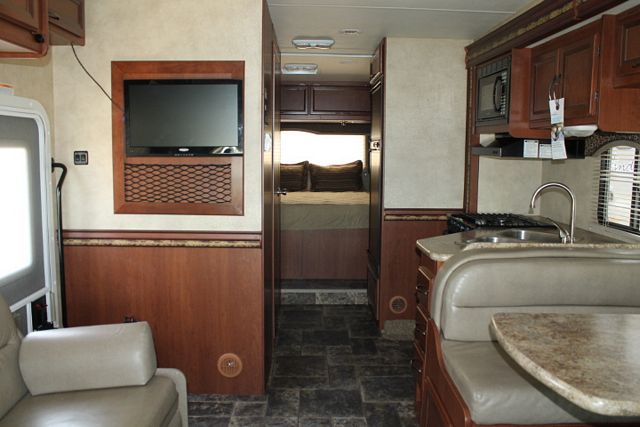 This Nearly New 2014 Four Winds has a V10 Ford Engine On a E450 Chassis, Features include....1 Slide-out, Onan Gas Generator, 1 Ducted Roof A/C, Double Door Refrigerator, Main & Slide Awnings, CD Radio, 2 TVs, DVD Player, Microwave, 3 Burner Range and Oven. Nice Rv for all of your travels. Get out and enjoy the views from the comfort of this Fourwinds.