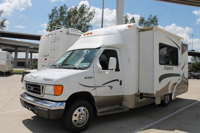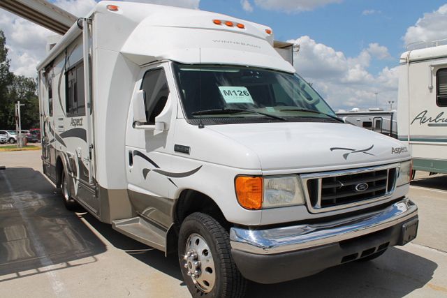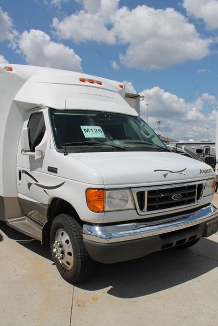 Nice layout ! This 2006 Winnebago Aspect is perfect for the small family or a couple on the go. It has a V-10 Ford Engine On a E350 Chassis, Comforts include....1 Slide-out, Onan Gas Generator, 1 Roof A/C, Double Door Refrigerator, Main & Slide Awnings, Backup Camera, CD Radio, TV, DVD Player, Convection/Microwave/Grill and 3 Burner Range. Easy to get around town in and easy to park at the campsite. Stop by for a Test Drive TODAY!