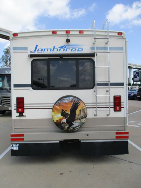 This 2004 Jamboree By Fleetwood has sleeping for up to 6 and is perfect for vacationing around the USA. It has a V-10 Ford Engine On a E450 Chassis, Options include....Onan Gas Generator, 1 Roof A/C, Double Door Refrigerator, Main & Window Awnings, Backup Camera, CD Radio, 2 TVs, Outside Shower, Microwave, 3 Burner Range and Oven. Has Springs Suspension with Air Assit for a smoother ride. Get out and see this Beautiful Country by RV
