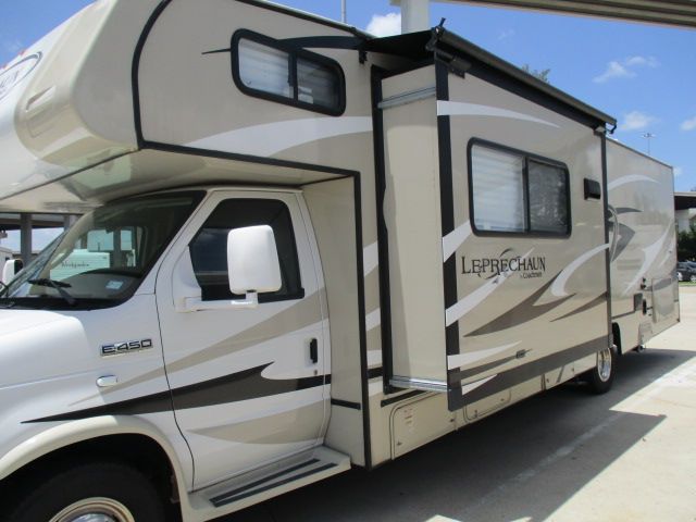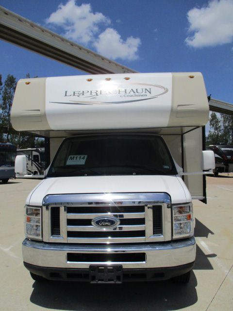 Family Friendly Floor Plan with Bunks thats perfect for the traveling family. This 2013 Leprechaun By Coachmen is loaded with comforts and sleeps up to 10. It has a V10 Ford Triton Engine On a E450 Chassis, Features include....2 Slide-outs, Onan Gas Generator, 1 Ducted Roof A/C, Double Door Refrigerator, Main & Slide Awnings, Backup Camera, CD Radio, Outside Shower and Speakers, 5 TVs, 3 DVD Players, Satellite Radio, Outside Shower, Convection Microwave and 3 Burner Range. Get Out and go traveling with the ones you love while enjoy the comfort of this Leprechaun.